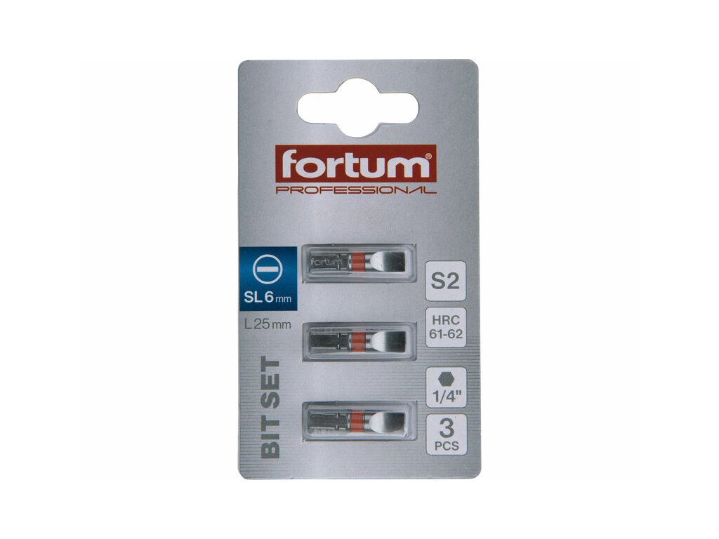 Bit plochý 3ks, 6x25mm, S2, FORTUM