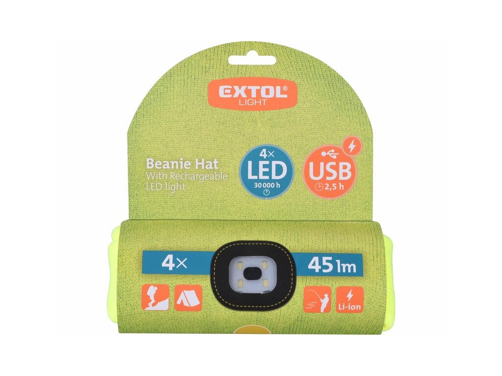 Čiapka žltá, s čelovým svetlom, LED 4x45lm, 300mAh Li-ion, EXTOL LIGHT
