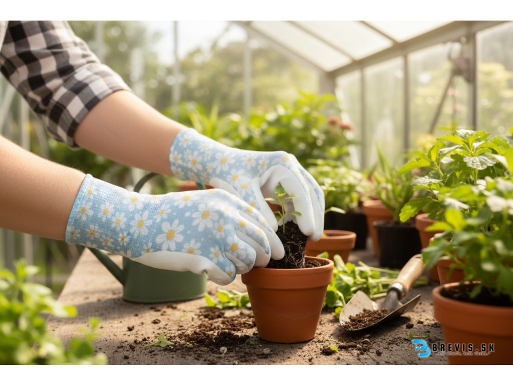 Príklad použitia: sadenie, presádzanie, pletie buriny, manipulácia s vlhkým náradím či kvetináčmi.