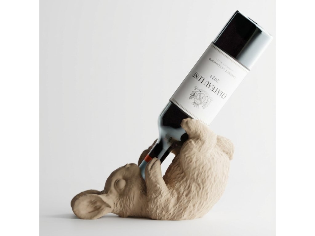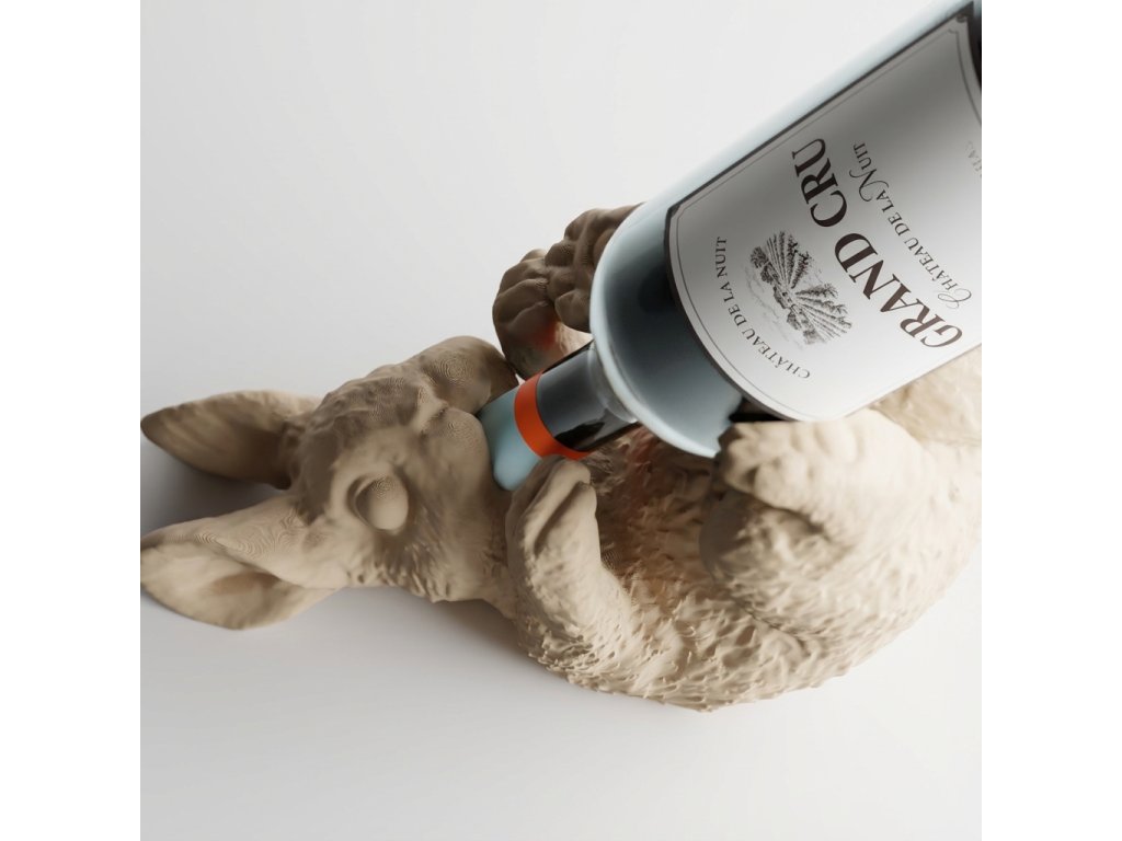 Držiak na vínovú flašu v tvare zajaca a vo farbe latte brown (latte hnedá)