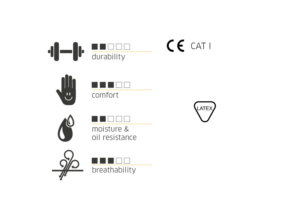 Pracovné rukavice Gebol G-Base Garden Grip kombinujú funkčnosť s dizajnom. Základ tvorí polyesterový úplet 13G s farebnou kvetinovou potlačou, ktorý je príjemný na nosenie a dobre sa prispôsobí ruke. Dlaň je chránená flexibilným latexovým krčivým povlakom, ktorý zároveň odpudzuje vlhkosť a pomáha udržať pevný úchop pri práci v suchom, mokrom aj mastnom prostredí.
