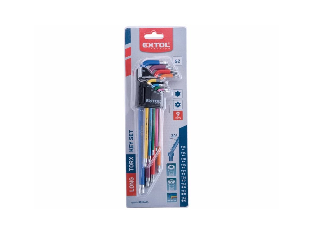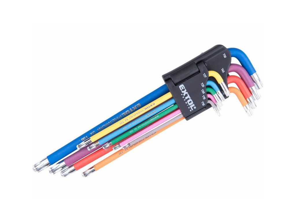 Kľúče Torx farebné predĺžené, 9ks, T10-T50mm, S2, EXTOL PREMIUM