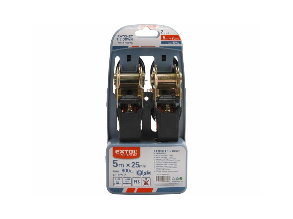 Pás sťahovací "gurtňa" s 2 hákmi, 5m x 25mm, sada 2ks, max. 800kg, GS, EXTOL PREMIUM