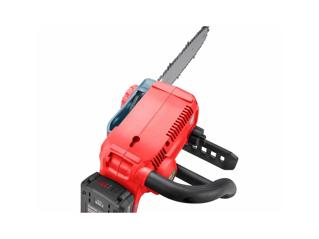 Reťazová akumulátorová píla je určená na vykonávanie skracovacích rezov dreva, výrub stromov s primerane hrubým kmeňom, odvetvovanie a rezanie kmeňov alebo hrubých vetiev na palivové drevo apod. Spája výhody elektrických píl - nízky hluk, jednoduchosť obsluhy a údržby - so slobodou pohybu benzínových píl. Je vybavená kvalitnou vodiacou lištou a automaticky mazanou pílovou reťazou. Pohon zaisťuje najmodernejší bezuhlíkovým motor. Tento nový typ motora má vyššiu životnosť, je výkonnejší a má menšiu spotrebu ako klasické motory s uhlíkovými kefami. Vysoký výkon brushless motora dovoľuje plynulý chod píly aj pri rýchlejšom rezaní. Píla je tiež vybavená systémom pre jednoduchú a rýchlu výmenu a napnutie reťaze. Vysokú bezpečnosť zaisťuje bezpečnostná poistka, ktorá sa aktivuje pri vykĺznutí z rúk alebo pri "kopnutí" píly a elektronickou dobehovou brzdou, ktorá zaistí jej rýchle zastavenie. Pogumovaná rukoväť bráni vyšmyknutiu, tlmí vibrácie a spríjemňuje držanie pri práci. Na spodnej strane píly je otvor na jednoduché zavesenie na stenu.
