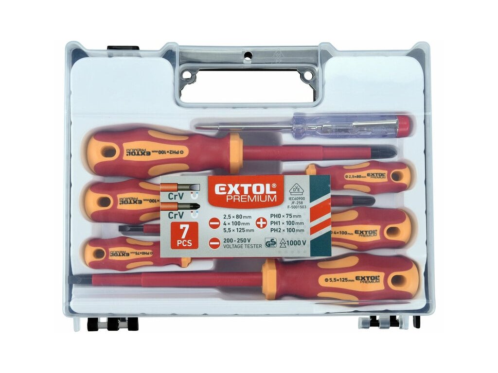 Skrutkovače elektrikárske 1000V, VDE, 7-dielna sada, CrV, EXTOL PREMIUM