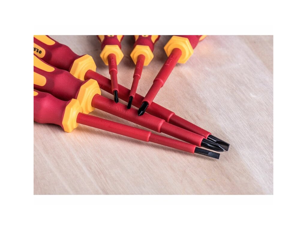 - VDE certifikácia: Každý skrutkovač je testovaný na bezpečné použitie pri práci s napätím až do 1000V, čo zaručuje maximálnu bezpečnosť.