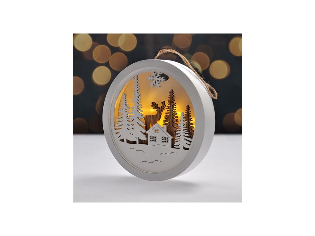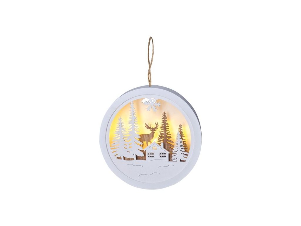 Solight LED dekorácie závesná, les a jeleň, biela a hnedá, 2x AAA