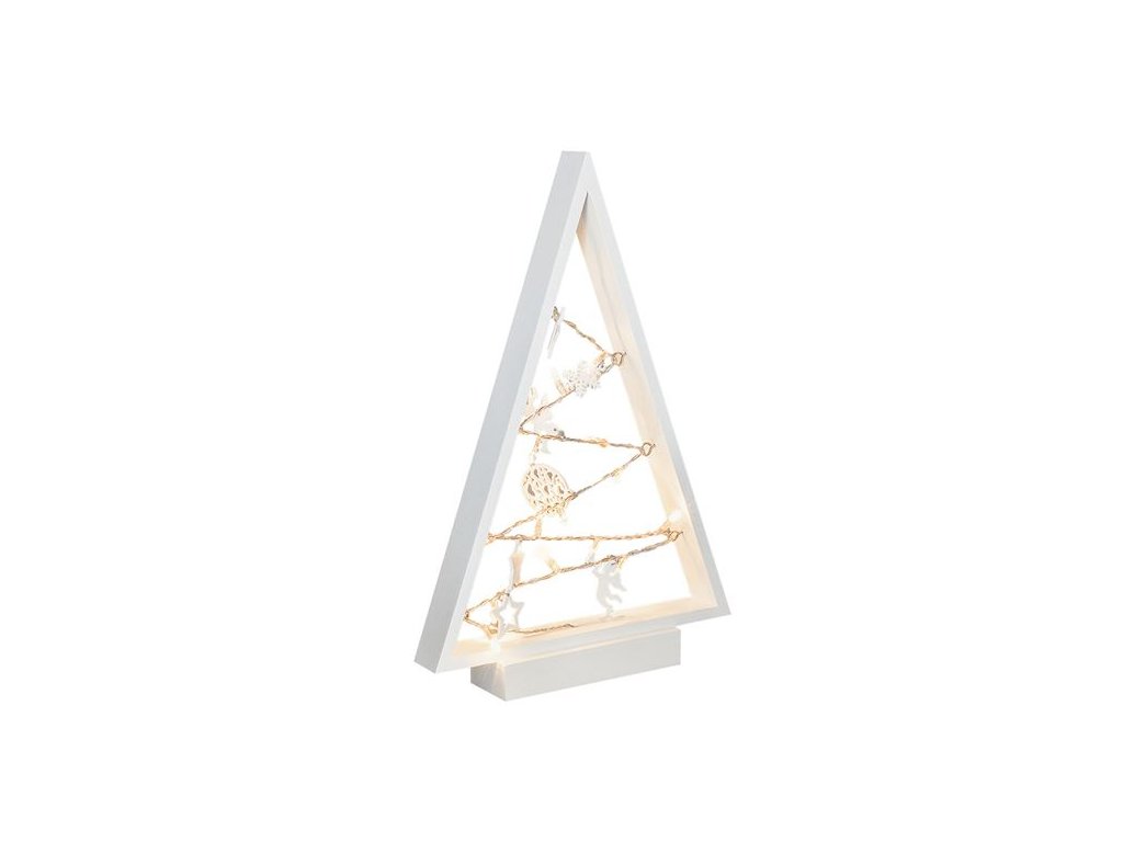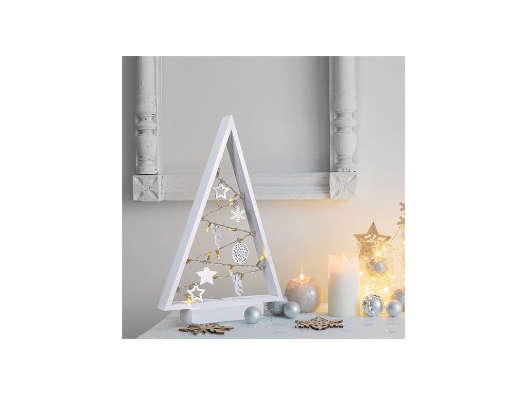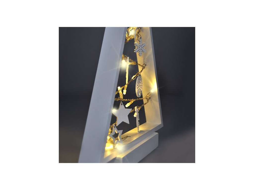 Solight LED drevený vianočný stromček s ozdobami, 15LED, prírodné drevo, 37cm, 2x AA