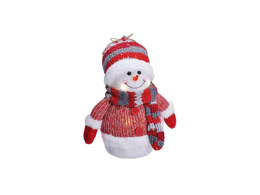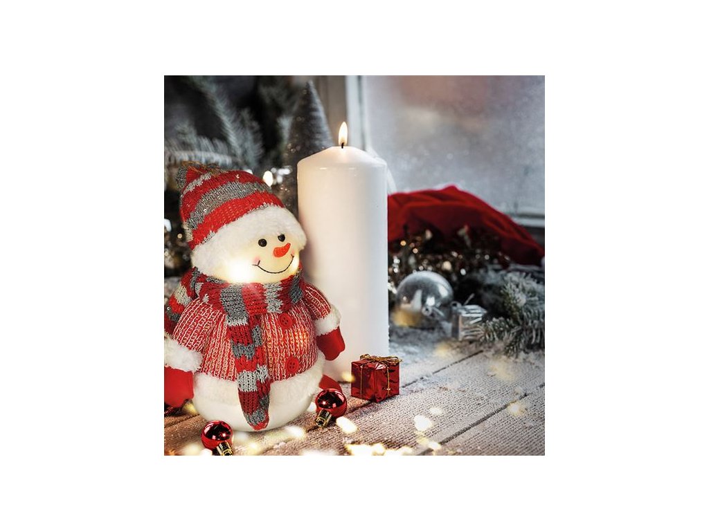 Veselý LED snehuliak je vynikajúcou voľbou na oživenie vášho vianočného interiéru. Výška 26 cm a farebné prevedenie v bielej a červenej farbe z neho robia výraznú a hravú dekoráciu, ktorá poteší najmä deti. Šesť teplých bielych LED diód jemne osvetľuje celé telo snehuliaka, čím zvýrazňuje jeho detaily.