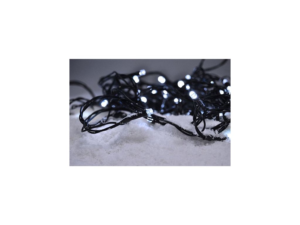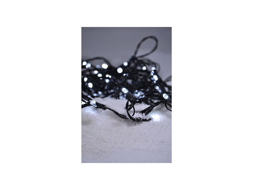S touto LED reťazou s 500 studenými bielymi LED diódami vytvoríte pôsobivú a elegantnú svetelnú dekoráciu. Ideálna do moderného prostredia, kde chladné svetlo vynikne na pozadí snehu, bielej fasády alebo skla. Ponúka osem rôznych režimov vrátane prelínania, blikania alebo jemného stmievania, vďaka čomu môžete efekt prispôsobiť svojej nálade alebo udalosti.