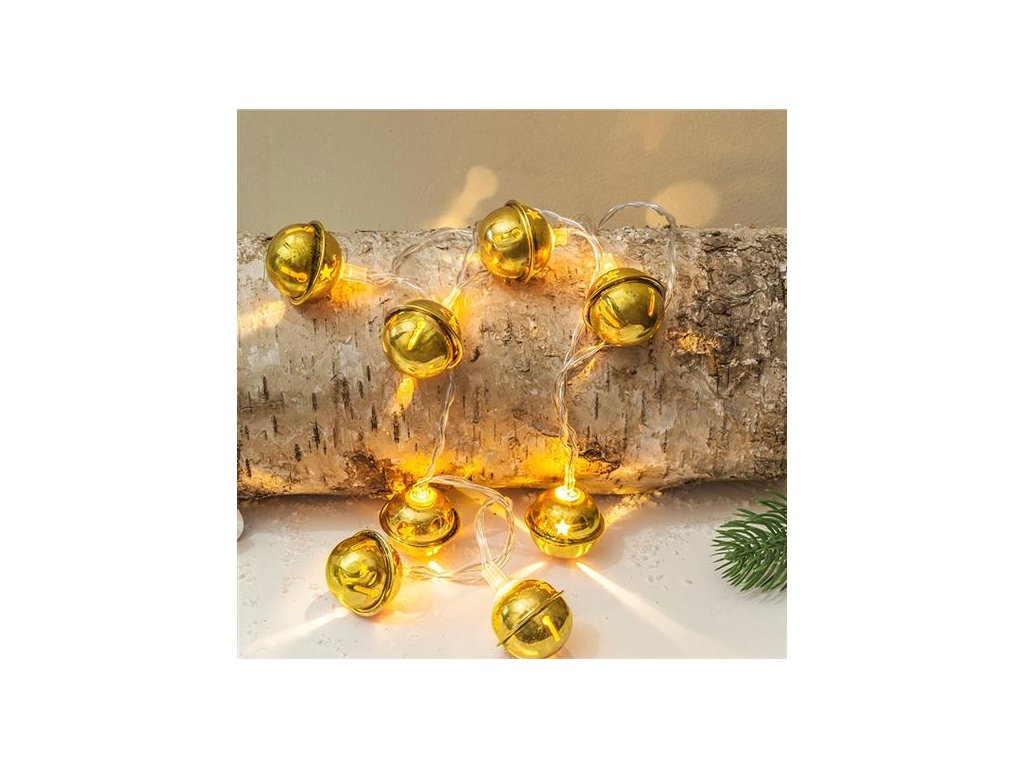 - vianočná dekoratívna reťaz so zlatými rolničkami i a LED diódami