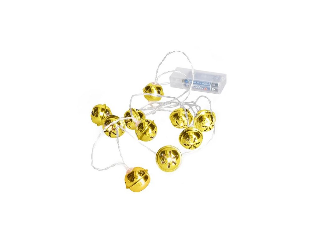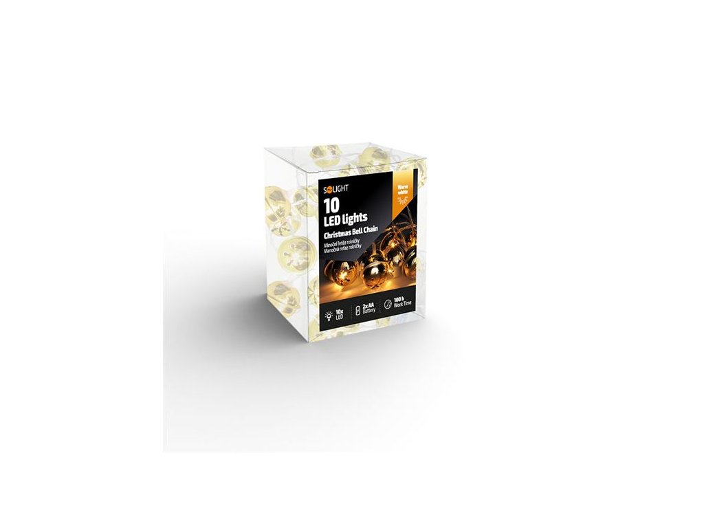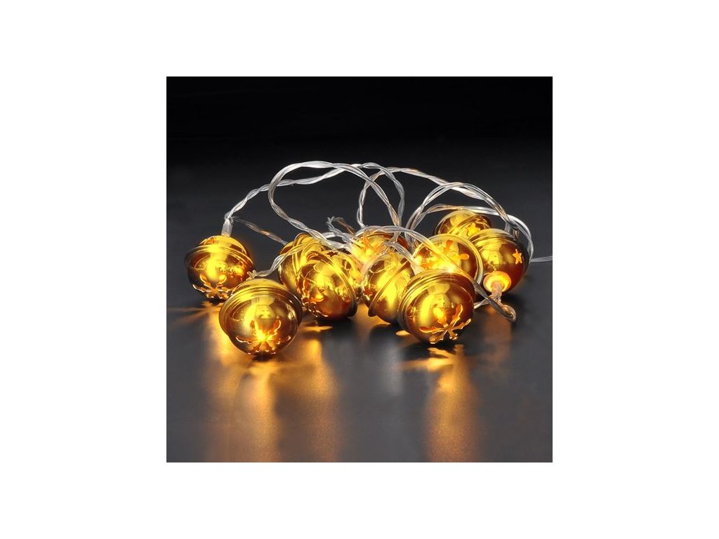 Solight LED vianočná reťaz rolničky, 10x LED, zlatá, 1,5m, 2x AA