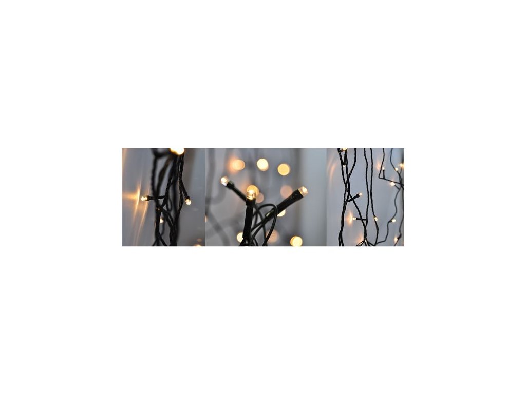 Solight LED vonkajšia vánočná reťaz, 50 LED, 5m, prívod 3m, 8 funkcií, časovač, IP44, teplá biela