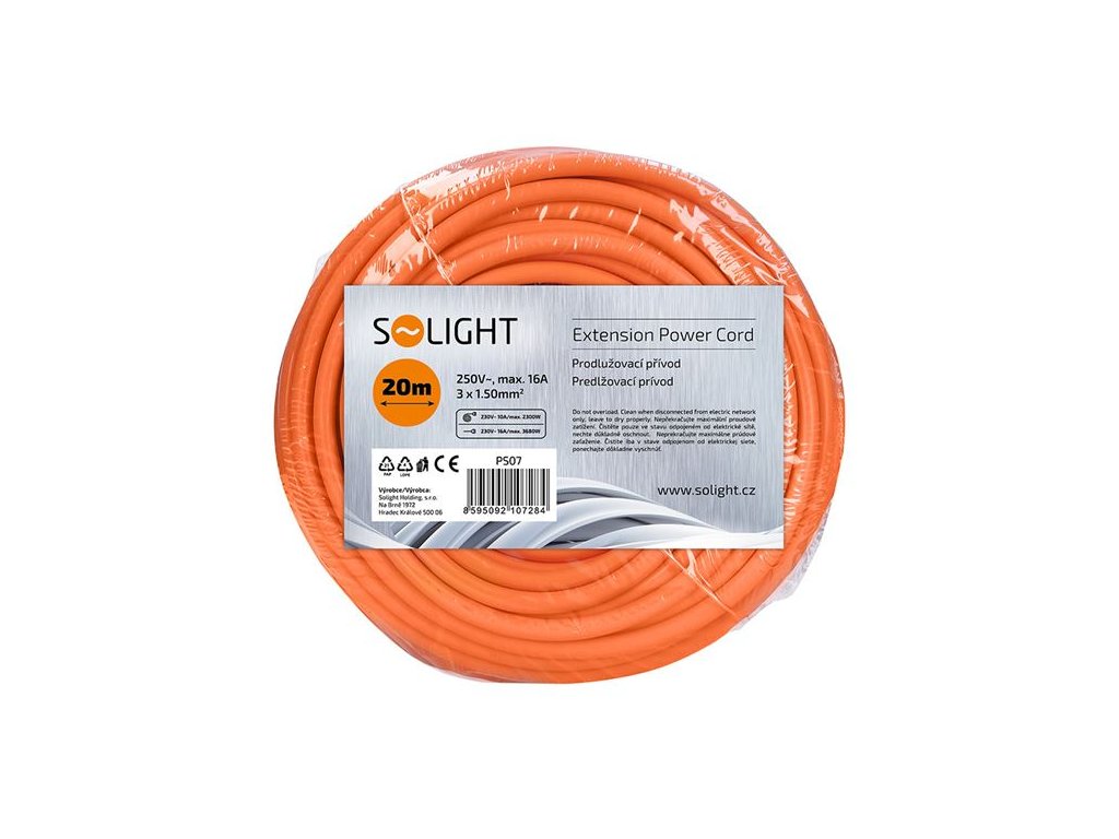 Solight predlžovací prívod - spojka, 1 zásuvka, 20m, 3 x 1,5mm2, oranžová