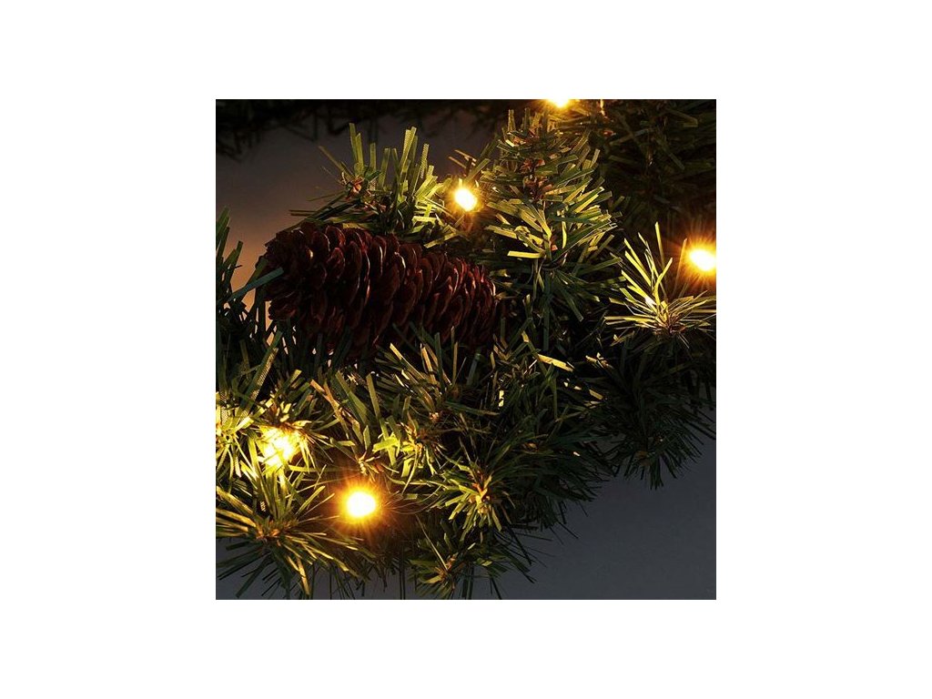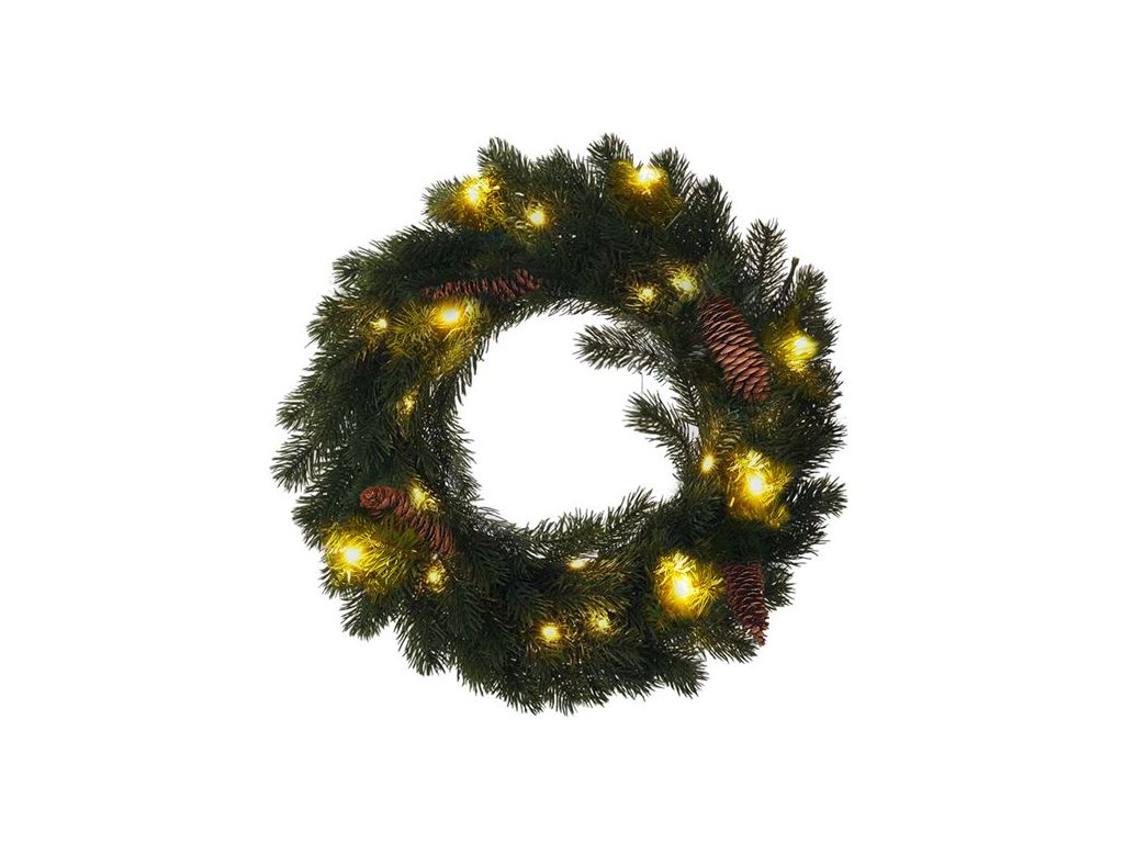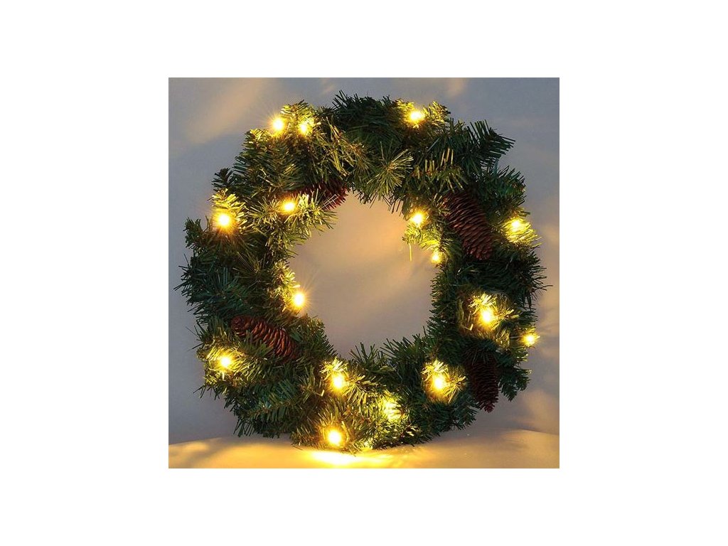 Klasický vianočný veniec s priemerom 40 cm a integrovaným LED osvetlením je ideálnou voľbou na ozdobenie dverí, stola alebo steny. Obsahuje 15 LED diód v teplej bielej farbe, ktoré vytvárajú útulnú a slávnostnú atmosféru. Zelené vetvičky vyzerajú realisticky a môžete ich doplniť mašľami, ozdobami alebo stuhami podľa vlastného vkusu.
