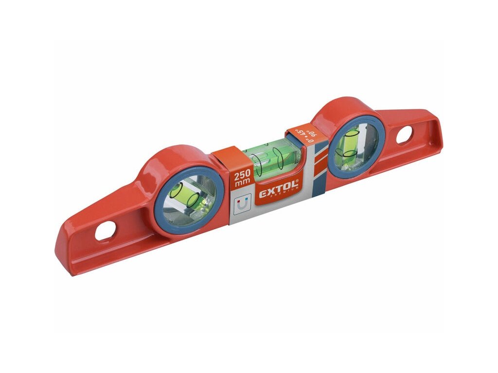 Vodováha hliníková, 3 libely, magnetická Torpedo, 250mm, frézovaná, EXTOL PREMIUM