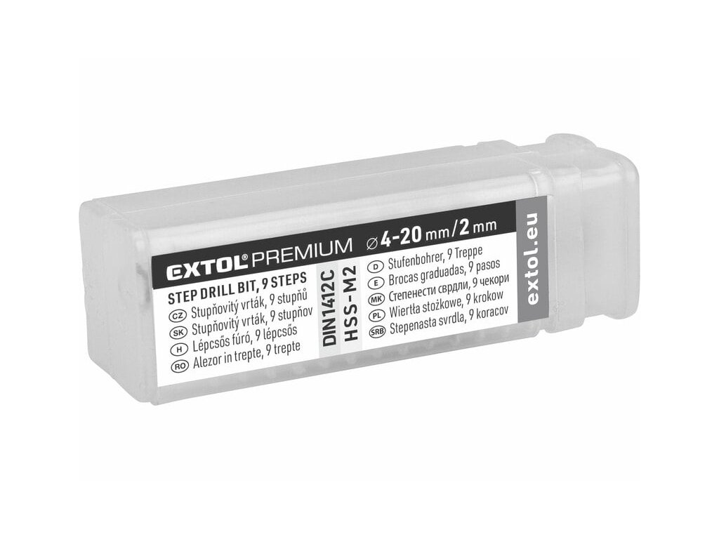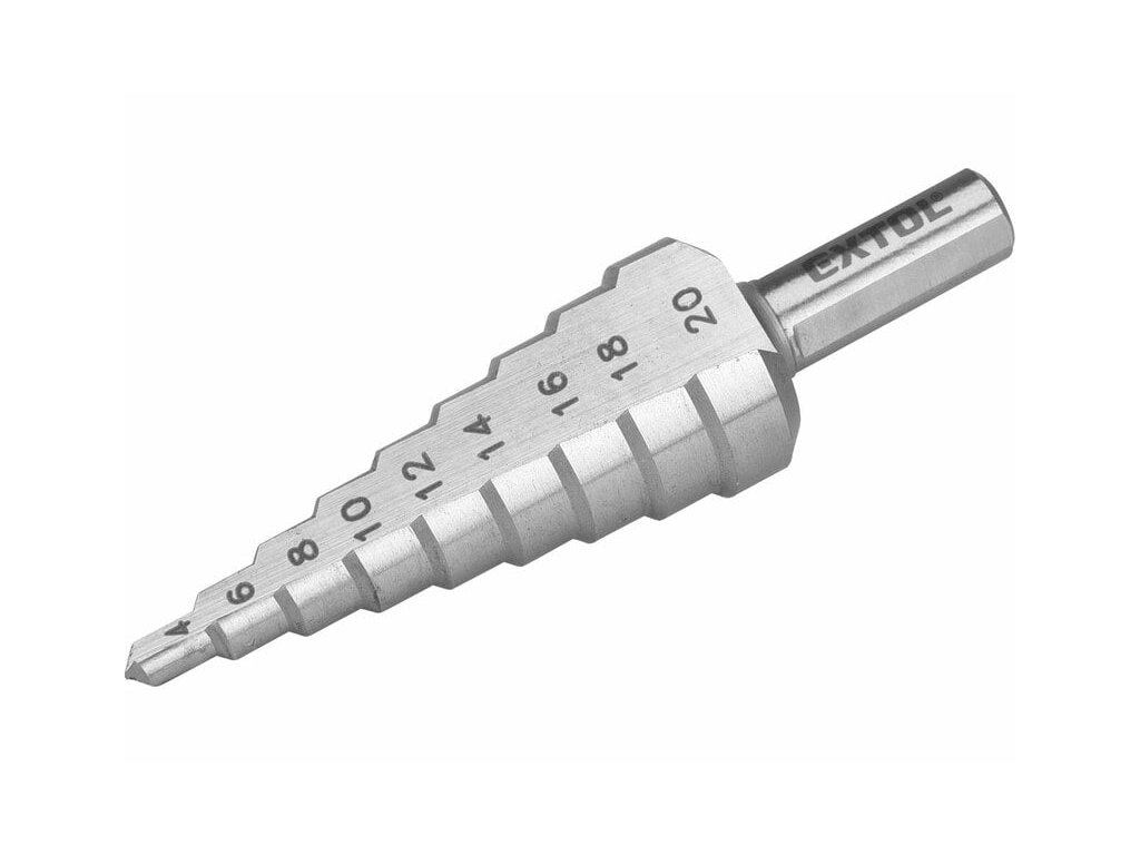 Vrták stupňovitý DIN 1412C, ø4-20mm, stupňovanie 2mm, 9 otvorov, EXTOL PREMIUM