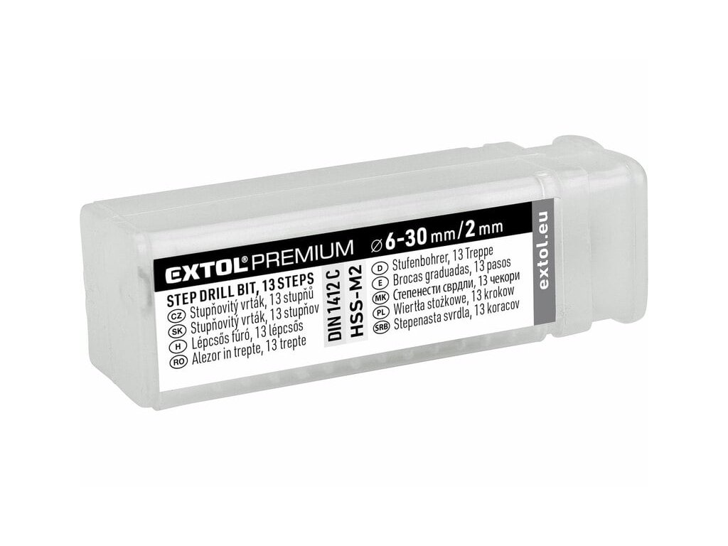 Vrták stupňovitý DIN 1412C, ø6-30mm, stupňovanie 2mm, 13 otvorov, EXTOL PREMIUM