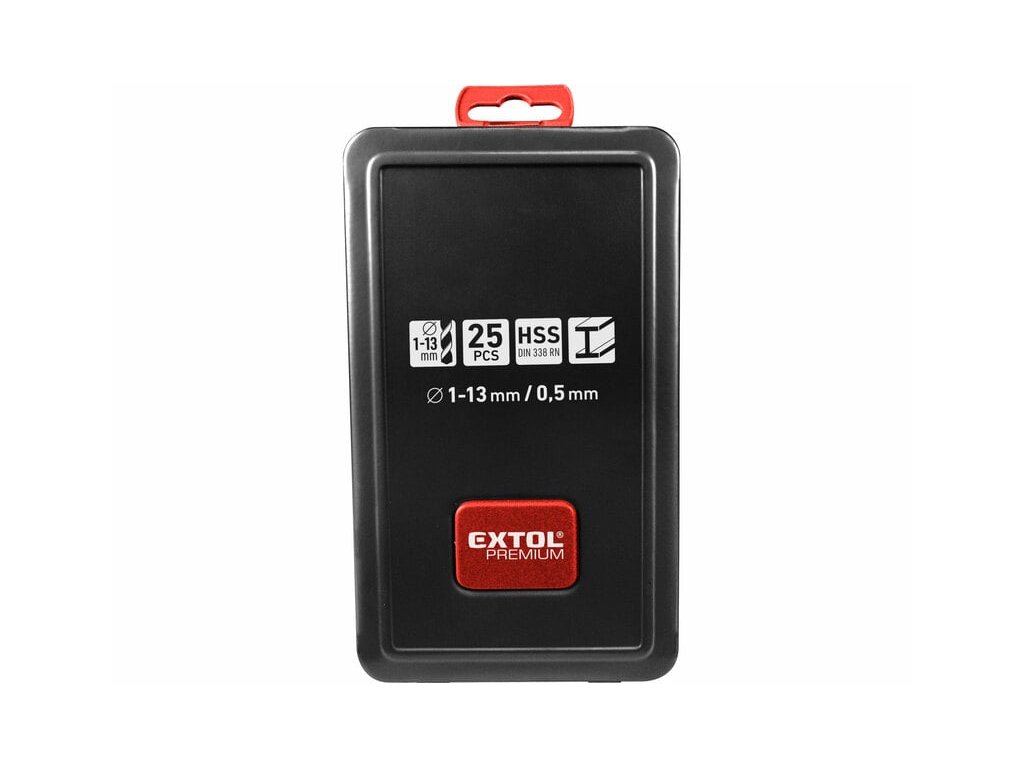 Vrtáky do kovu, HSS, DIN338, 25-dielna sada, Ø 1-13mm/0,5mm, kovové puzdro, HSS, EXTOL PREMIUM