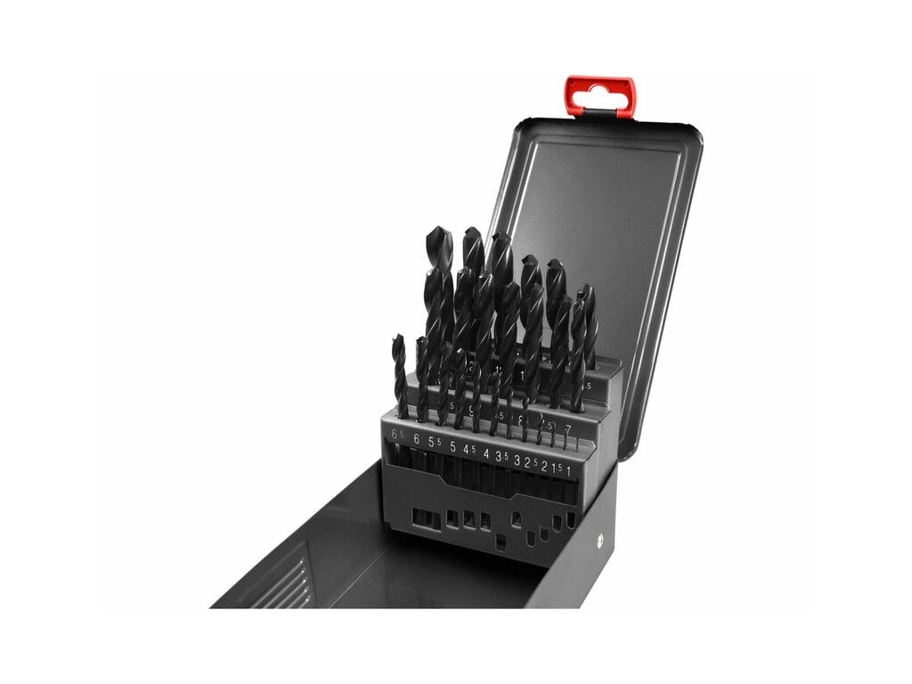 - 25 vrtákov: Priemery od 1 mm do 13 mm, čo pokrýva široké spektrum potrieb pri vŕtaní.